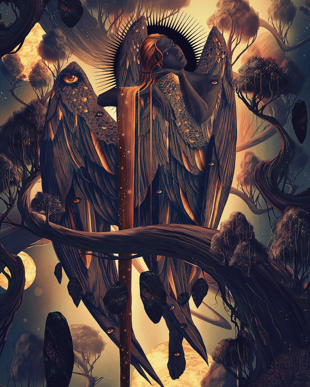 What could you tell us about the work process behind the cover art for Daughter of Crows? Readers usually only see the finished piece online, so we’d love to hear what happens behind the scenes. Anything you can reveal about ideas and challenges would be interesting.