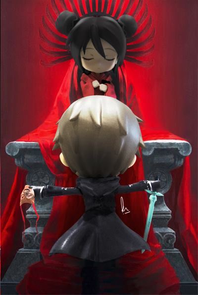 The Silent Sister and the Red Queen from a painting in progress by Simon Schmidt
