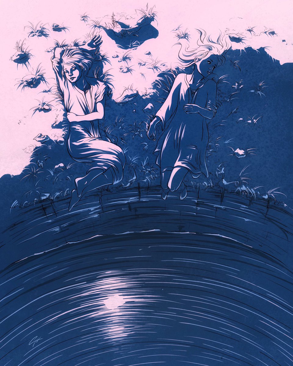 ‘Clera and Ara at the sinkhole in the light of the focus moon’ by Craig Houghton